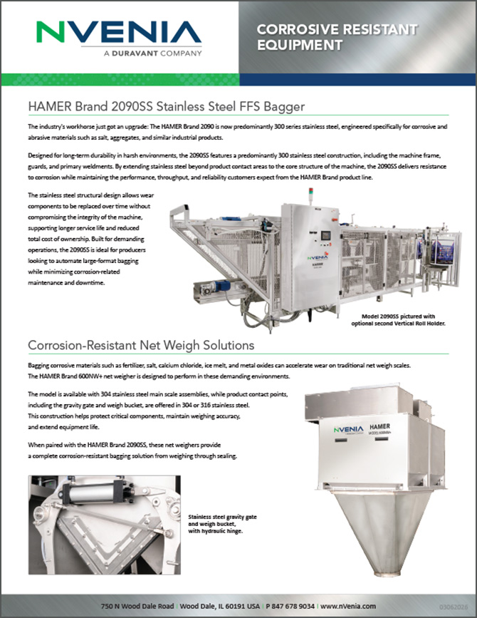 HAMER Brand 2090SS Form, Fill & Seal Bagger Spec Sheet